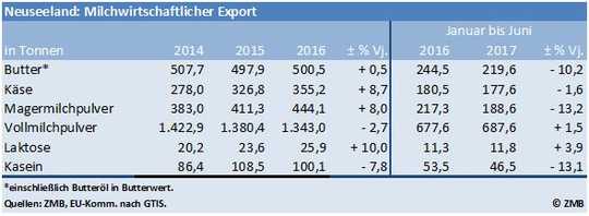 Neuseeland: Weniger Milchprodukte exportiert |