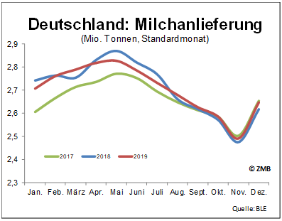 Deutschland: Milchanlieferung 2019 stabil